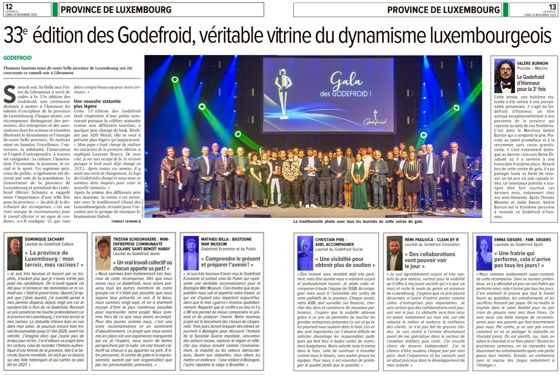 Lors du Gala de la 33e édition de la cérémonie des Godefroid, organisé à la Halle aux Foires de Libramont, la mini-entreprise mini UKB, créée par nos anciens élèves de 5TT, option économie appliquée, a été couronnée lauréate de la catégorie Jeune !
