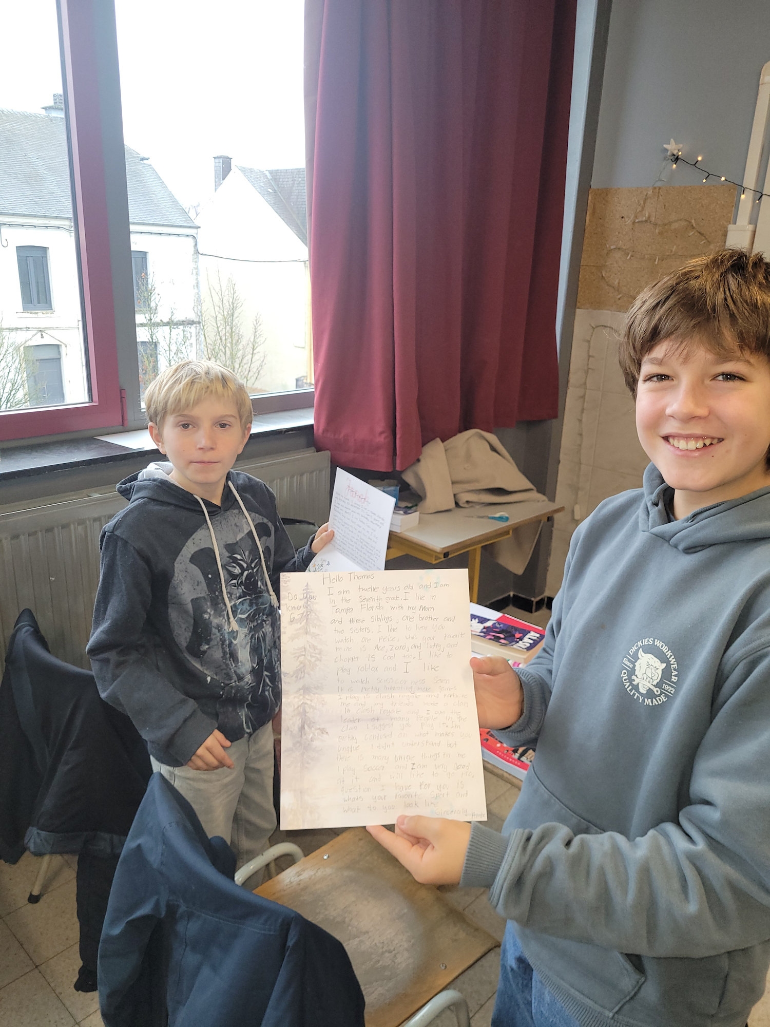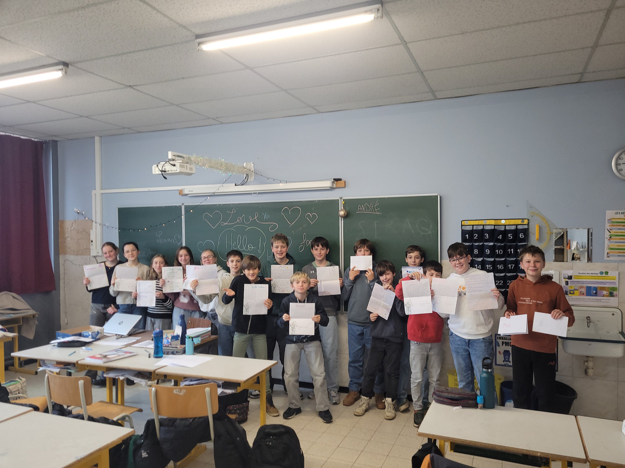 After sending a first letter in November to Mrs. Caldwell’s class in Florida, the students in Mrs. Degive’s English class (1CB) have finally received a reply! What a joy to discover what their new friends wrote to them! A lovely exchange that we will try to maintain throughout the year.