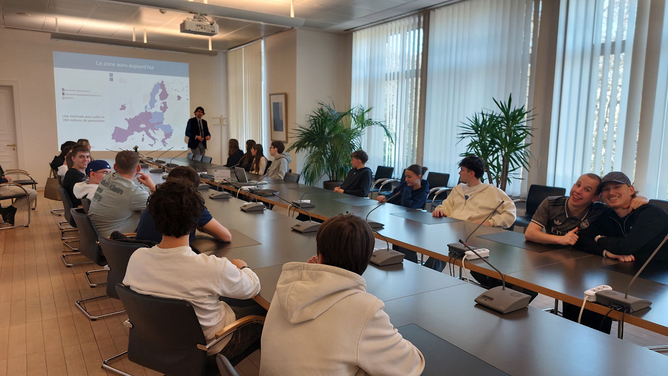 Place à la pratique économique ! Les élèves ont pu échanger sur des concepts clés de leur programme : inflation, déflation, stabilité des prix et missions des banques centrales. Rien de tel qu’une visite de terrain pour maîtriser les rouages de la finance européenne.